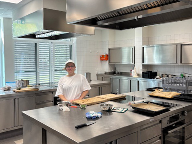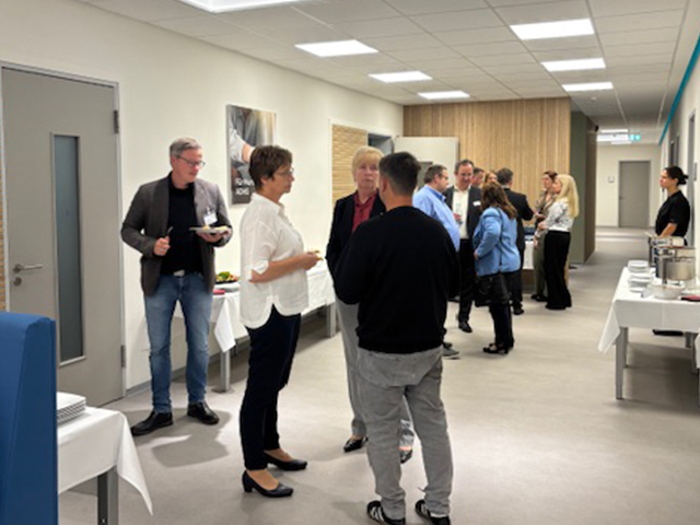 Doch der heimliche Star des Tages waren die neu-alten Räumlichkeiten der Niederlassung im Stadtteil Weitin: Was in der ehemaligen DDR als wuchtige Produktionshalle für Penicillin genutzt wurde, war in die Jahre gekommen – und wurde jetzt von SALO+PARTNER aufwendig umgebaut. „Wir haben die Halle kernsaniert und energetisch mittels Solaranlage und Wärmepumpe auf den neuesten Stand gebracht“, sagte Alexander Wohlleber, Geschäftsführer der Salo Berufliche Bildung GmbH bei der Begrüßung der rund 40 Gäste. Auch innen erstrahlt die Halle jetzt mit modernen Sitzecken als Raumteilern, intelligenten Lichtlösungen und hellen Werkstätten unterschiedlicher Bereiche (Holz, Hauswirtschaft) im neuen Glanz. „Unsere jugendlichen Teilnehmenden fühlen sich hier sehr wohl“, sagte Niederlassungsleiterin Heike Bertz bei einem Rundgang, bei dem das tolle SALO-Küchenteam hausgemachte Köstlichkeiten wie Flammkuchen und Pflaumenmus servierte.