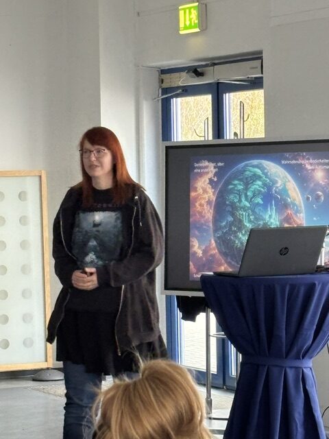 Sie arbeitet in der Öffentlichkeitsarbeit der Wolfsburger Autismusambulanz und hat als Erwachsene die Diagnosen ADHS und Autismus bekommen. In ihrem Vortrag „Derselbe Planet, aber eine andere Welt: Wahrnehmungsbesonderheiten bei Autismus“ gab sie den Zuhörerinnen und Zuhörern einen kleinen Eindruck vom Leben im Alltag mit diesen beiden Diagnosen mit hoher Empfindlichkeit gegenüber Sinnesreizen, enormem Energieaufwand, Andersartigkeiten – „für mich stellt sich Zeit als Kreis dar“ – aber auch kreativen Stärken.